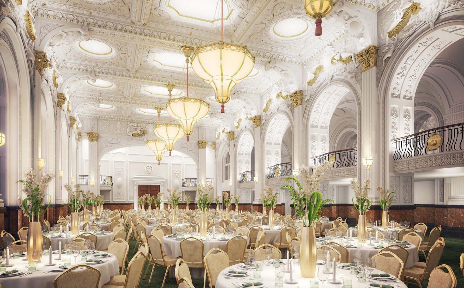 During the construction of the ballroom, specialists for the first time used an innovative approach of structural steelwork. It enabled the creation of extremely high ceilings. The construction of the Grosvenor Room became the first case in English history when that method was used successfully.