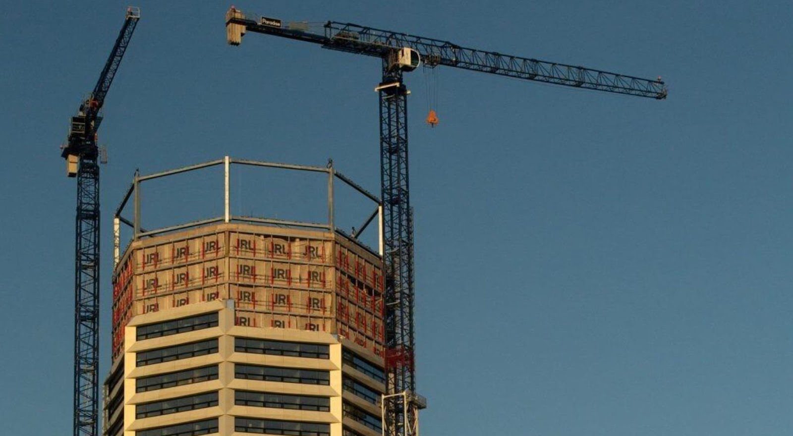 Поэтому шпили были удалены и заменены двумя конусами, размещенными в задней части башни на высоте лестничных клеток. Добавлен свес спереди. Предлагаемое офисное помещение сверху также было удалено. Строительство началось в марте 2003 года с возведения щитов вокруг участка, что позволило начать работы по очистке и строительству башенного крана.